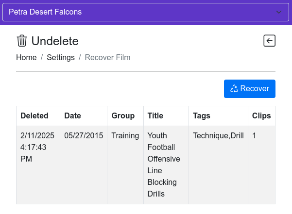 - The film will be restored to its original location within your WatchGameFilm library.