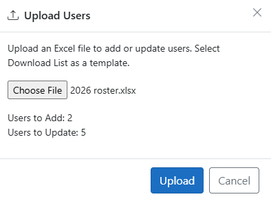 Properly create your spreadsheet then select it in the Upload Users dialog. WatchGameFilm will analyze your spreadsheet before importing the users into your team.