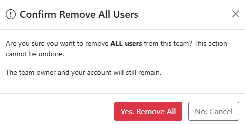 To remove all users on your team, press the Remove All Users button on the toolbar.